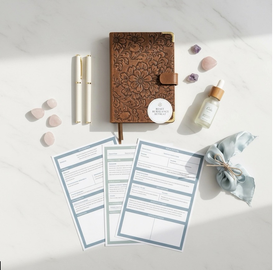 But here’s what sets this apart: the materials aren’t just workbooks you’ll stuff in a drawer. These are tools designed to travel with you long after the retreat ends. And those curated surprises? They’re not random gifts, they’re thoughtfully chosen elements that enhance your specific journey.